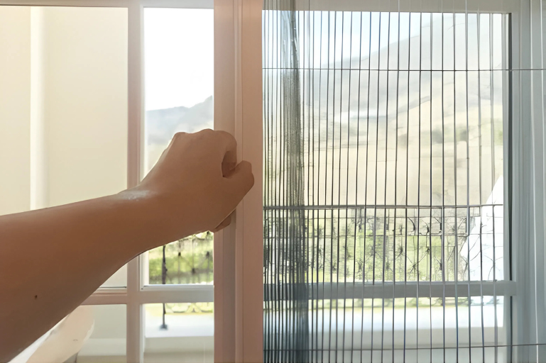 Unlike traditional fixed screens, our Zig Zag (or pleated) mosquito nets operate on a unique folding mechanism. They glide smoothly along a track and collapse neatly to the side when not in use, offering you unobstructed views and maximum flexibility. Perfect for large openings like sliding doors, balcony entrances, and wide windows